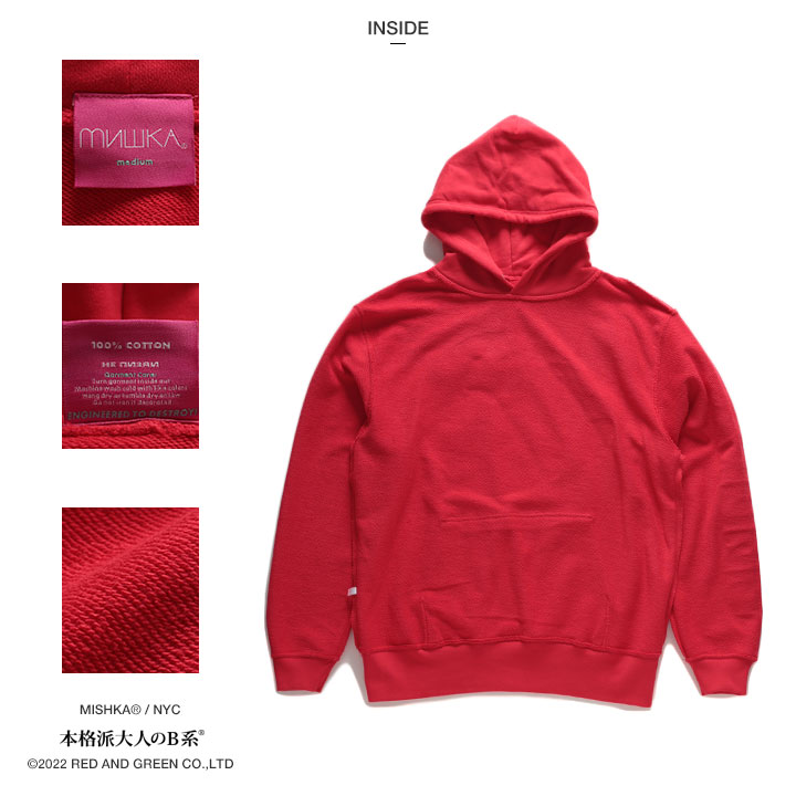 B系、ストリートファッションを牽引するMISHKAアメリカ企画なので、品質もディティールも安心の仕上がり。大きいサイズでルーズに着こなすスタイルはもちろん、タイトやジャストサイズのカジュアルにもしっかりハマります。男性はもちろん、女性にもオススメ。