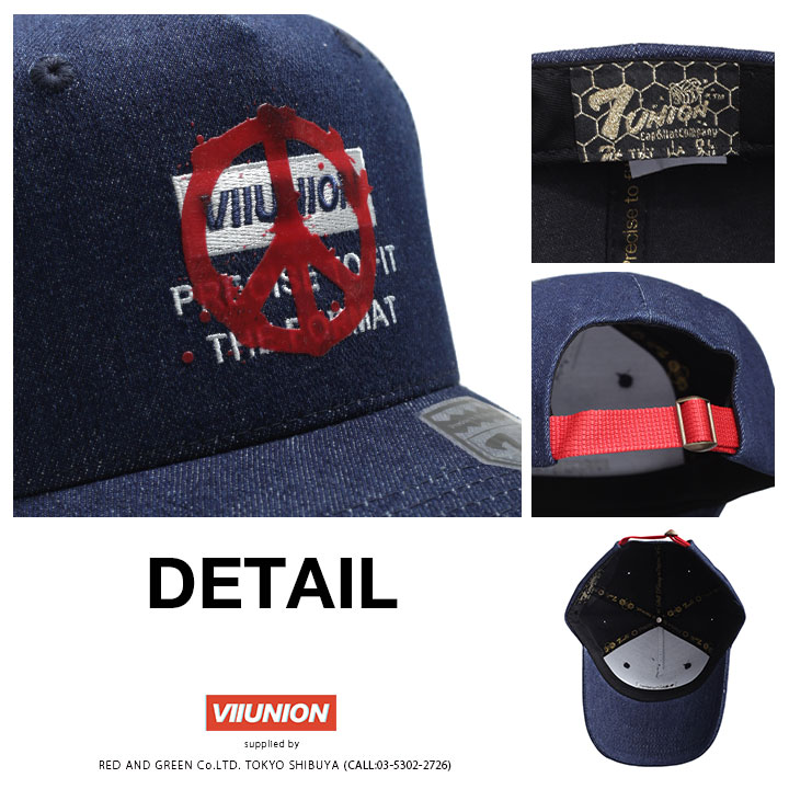 7union キャップ メンズ レディース 春夏秋冬用 デニム/黒 セブンユニオン 公式 帽子 cap ぼうし 深め スナップバックキャップ おしゃれ かっこいい ピースマーク ボックスロゴ 刺繍 b系 ヒップホップ ファッション ストリート系 ハイ ブランド ISVV-111
