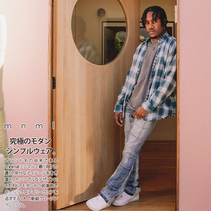 最先端のデザイン・パターンにクラシックな要素を加えたウェア展開で人気を集め、海外セレブやインフルエンサーなど、ファッショニスタがこぞって着用しているLA発ストリート系ブランドの「mnml/ミニマル」からおしゃれなジーンズ(ロングパンツ)が入荷!