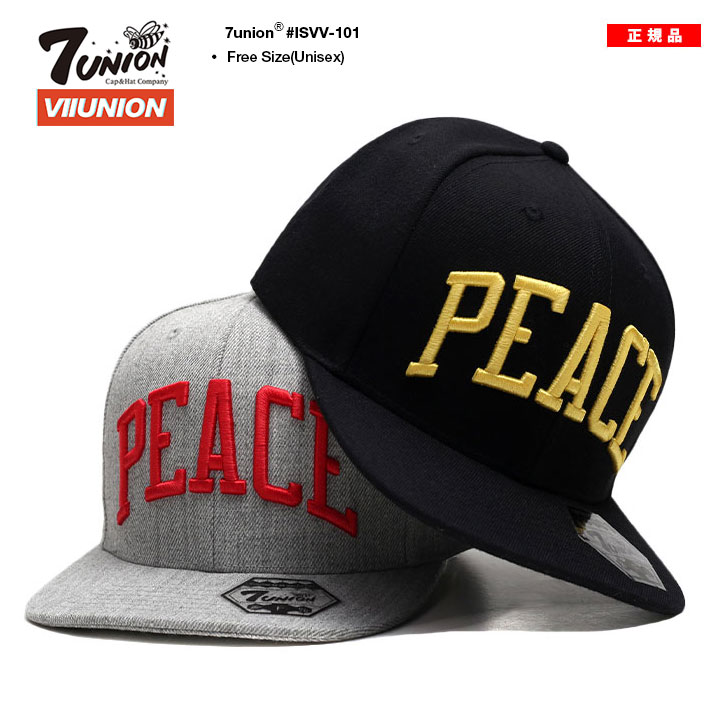 フロントパネルに、「PEACE」ロゴ、バックパネルに目をVIIUNION BOX LOGOで隠した「笑顔のアイコン」、左サイドに「7union」のミニロゴ刺繍を施したスタイリッシュな仕上がり。