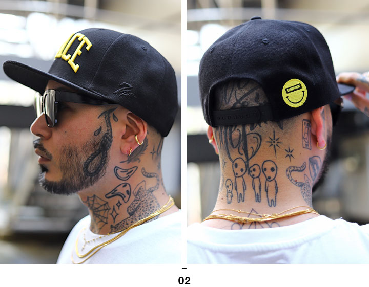 「スナップバックキャップ」や「ベースボールキャップ」とも呼ばれる高めのクラウンと四角型フラットバイザーによる、スポーティーなシルエット。