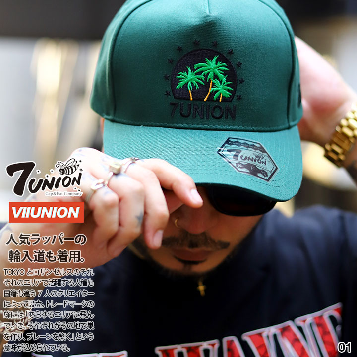 フロントパネルに、「ヤシの木」ロゴ、左サイドに「7union」のミニロゴ刺繍を施したスタイリッシュな仕上がり。