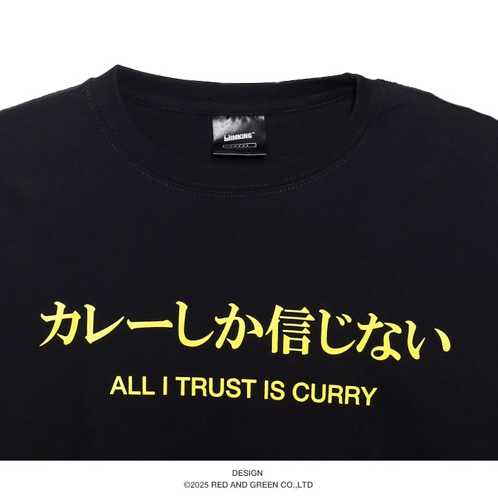 カレーしか信じないと共に配置された英訳の「ALL TRUST IS CURRY」もポイント。