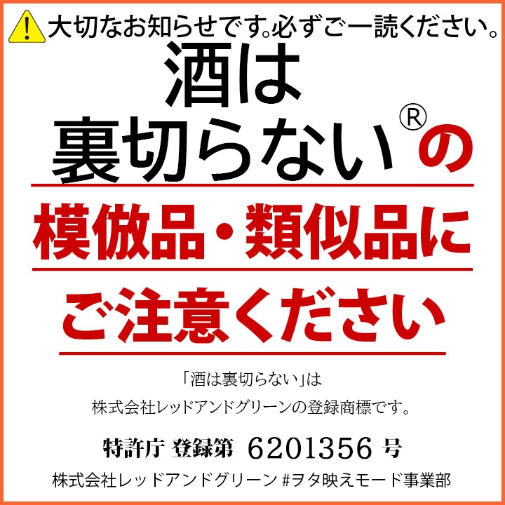 「酒は裏切らない」は株式会社レッドアンドグリーンの登録商標です。模倣品・類似品にご注意ください。